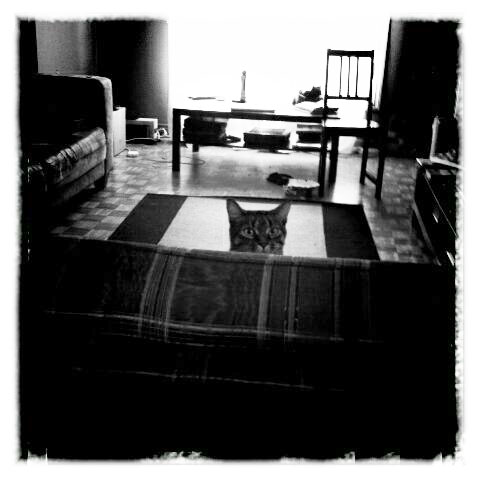 Today I arrived home to my funny kitty, K2. K2 sat on the couch as I took off my shoes and when I spotted her, I hid. Then I popped my head up and her eyes got wider. I repeated this a few times while giggling. She seemed so shocked that I could disappear like that. Silly cat. I LOVE HER.