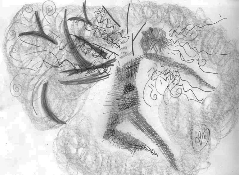 I sat at my desk, in my stinking sweat and rushing euphoria and quietly sketched how I felt.