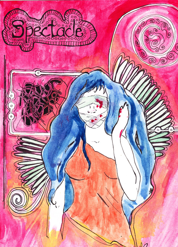 Debord is based on “Society of the Spectacle” and Nietzche is based on “On The Geneology of Morals.” I have quite a few around (Carl Jung, Kant, and Dostoevsky, to name a few) and am planning on deconstructing this idea in a bigger form. Watercolor isn’t my main medium, but I like experimenting with it. The colors are far more vivid than acrylic, and I am a big lover of vivid colors. I need them bright, even when the subject is bleak (ie. “Claudia“).