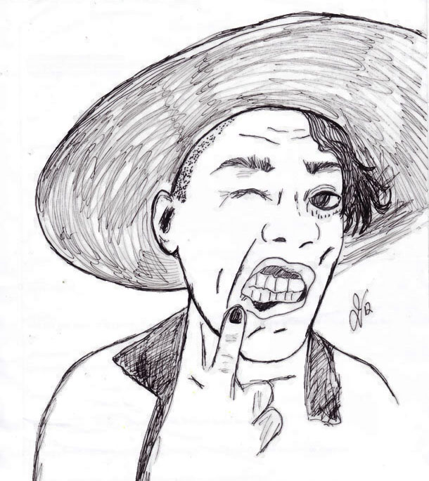 “Hat” self-portrait, ink, October 2012.